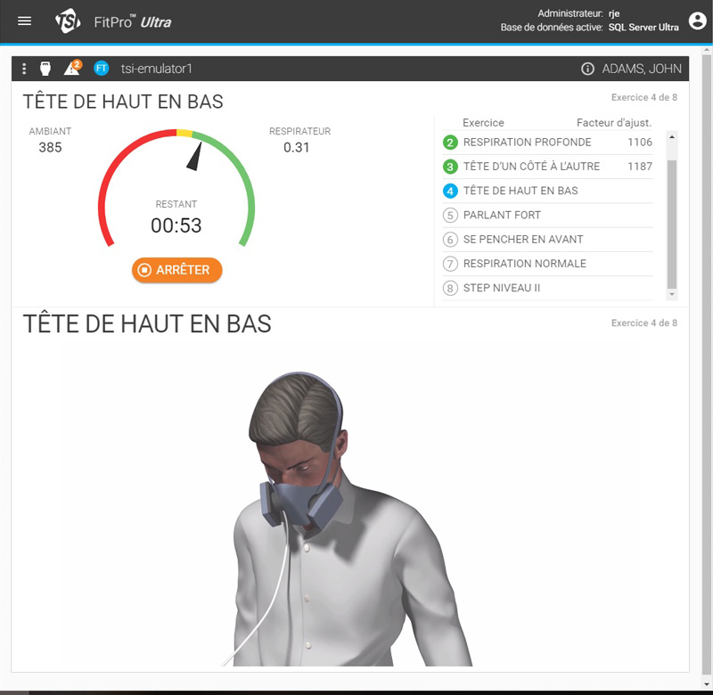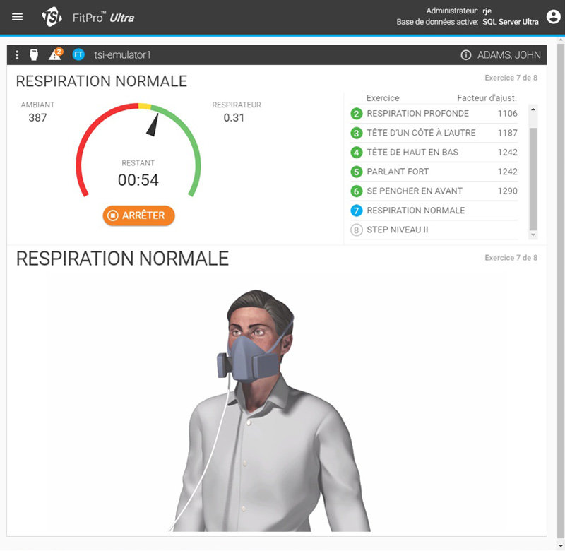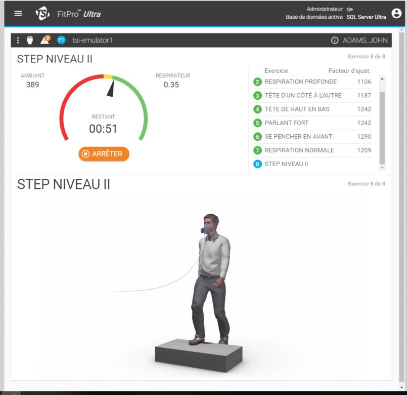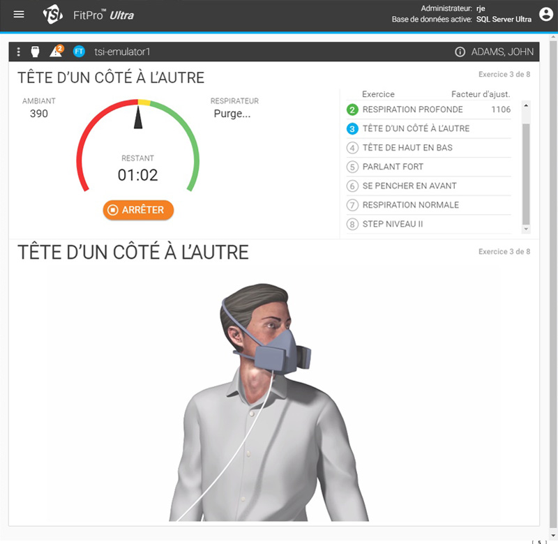 La personne testée effectue une série d’exercices qui défilent sur l’écran du PortaCount®, afin de simuler au plus près les mouvements du quotidien.